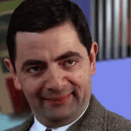 Mr. Bean makes a series of funny, mischievous facial expressions, with the Finnish word 'Löysä' appearing on screen.