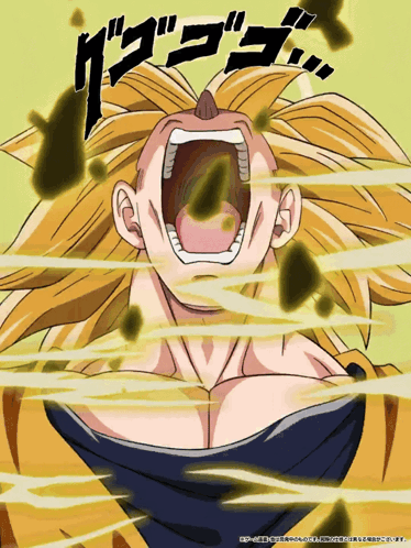 Lr Agl Super Saiyan Goku Angel powers up to Super Saiyan 3 with an intense scream and golden aura.