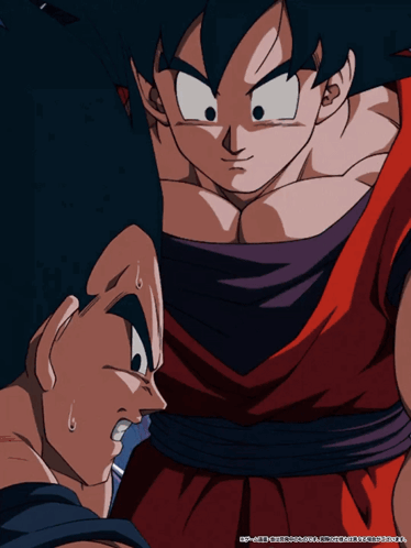Goku and Vegeta react to an incredibly strong opponent, with Goku expressing excitement for the challenge.