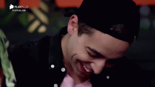 Lucas Selfie Lucas Maciel laughing heartily and covering his face with his hand during a moment of amusement.