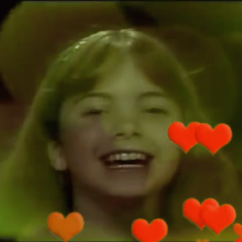 Lucero Lucerito, a young girl, smiling with animated red hearts floating around her face.