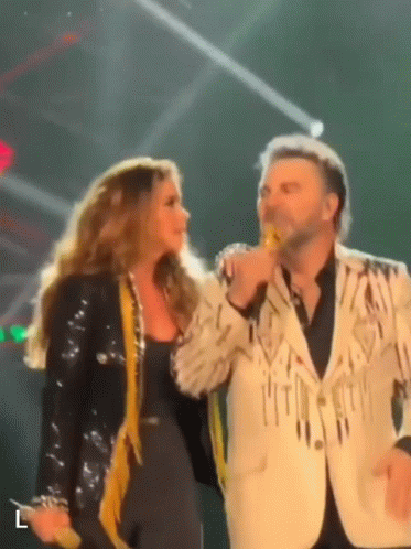 Lucero and Mijares share a passionate moment on stage during a live duet performance.