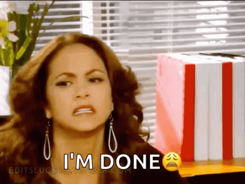 Lucero expresses frustration, throwing her hands up and declaring 'I'm Done' with a stressed-out look.