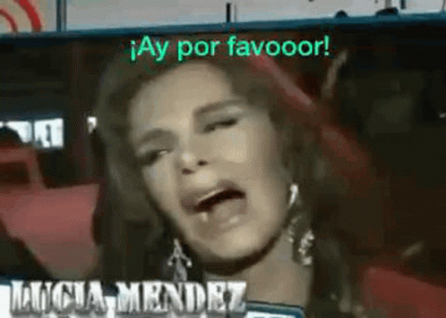 Lucia Mendez in a close-up, exclaiming '¡Ay por favooor!' with an expressive look.