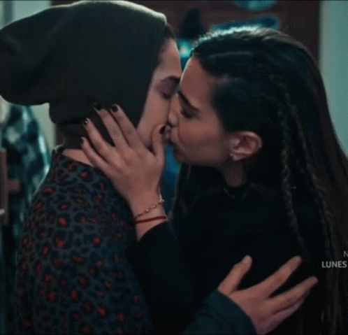 Lucía Sandoval Blanco (Macarena García) and Alejandra Rivera (Fernanda Urdapilleta) share a passionate kiss in 100 Días Para Enamorarnos.