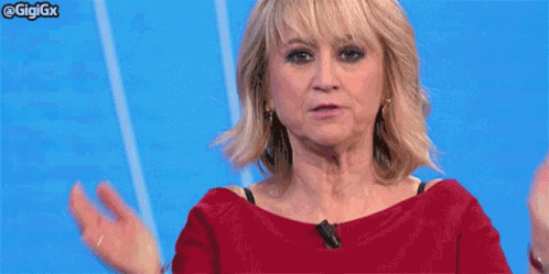 Luciana Littizzetto makes a heartfelt gesture of appreciation, blowing a kiss to the audience in a red top.