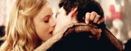 Lucy Fry shares an intimate kiss with a man in a scene from Vampire Academy.