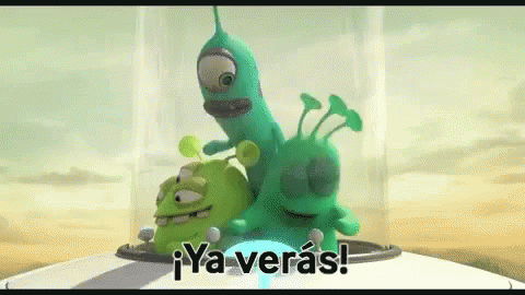 Three green cartoon aliens react inside a spaceship, with the Spanish caption '¡Ya verás!' (You'll see!) displayed.