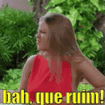 Luisa Sonza in a red dress, expressing disappointment with 'bah, que ruim!' in front of a green bush.