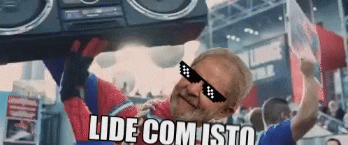 Brazilian president Lula da Silva in a 'Deal With It' meme, holding a boombox and saying 'Lide Com Isto'.