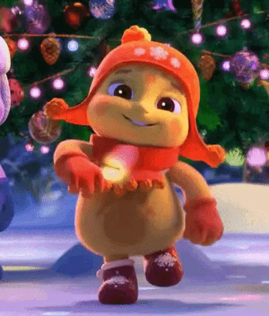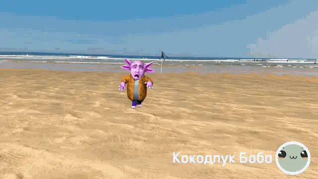 A close-up of a creepy, pink Luntik monster with glowing red eyes and a wide, unsettling smile.