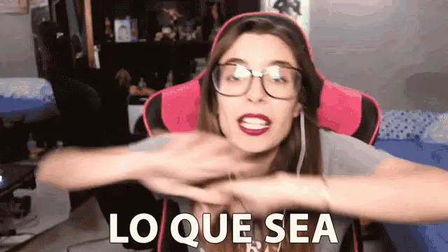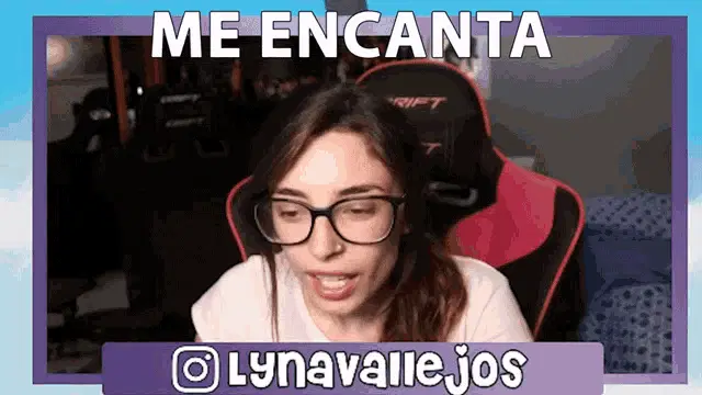 Lyna Vallejos wearing headphones and a Hello Kitty face filter, looking around while seated in a gamer chair.