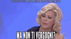 A woman with blonde hair asks "Aren't you ashamed?" in a direct and questioning manner.