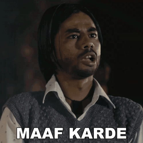 Prince Kashif looks directly at the camera with the Hindi phrase 'Maaf Karde' (Forgive me) displayed.