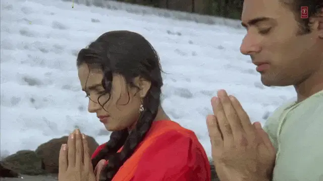Maan (Gurmeet Choudhary) and Geet (Drashti Dhami) share a tense moment, with Maan looking intently at Geet.