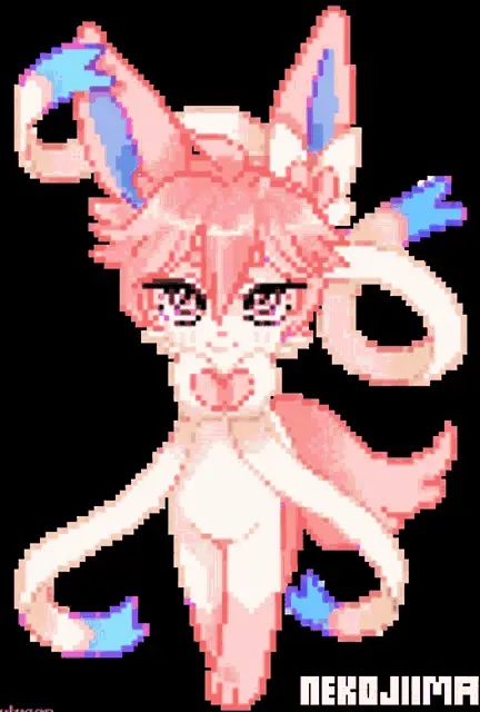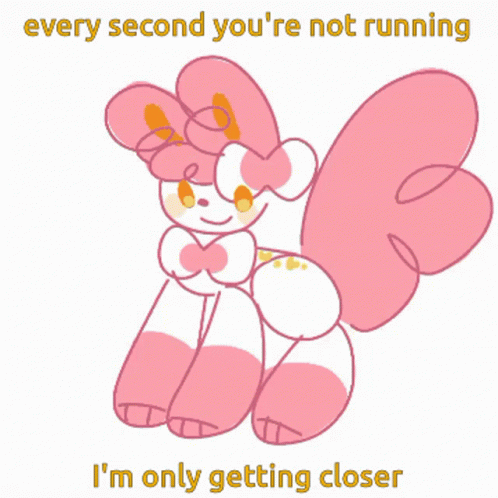 Macaroonsylveon, a pink and white creature, warns 'every second you're not running I'm only getting closer'.
