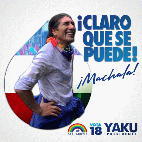Yaku Pérez's political campaign in Machala, Ecuador, with the slogan "¡Claro Que Se Puede!" and "Vota 18 Pachakutik."