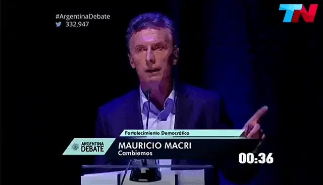 Mauricio Macri energetically calls out 'Llamen a los modz' (Call the mods) during a political speech.