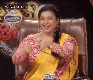 Roja's joyful and expressive reaction, laughing and pointing during a show, embodying the 'Made For Each Other' theme.