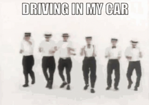 The band Madness performs synchronized dance moves to their hit song 'Driving In My Car'.