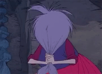 Maga Mago, the Pig Face Witch, pulling her purple hair in frustration, a classic cartoon character.