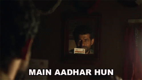 Vineet Kumar Singh looks at his reflection in a mirror, with the text "Main Aadhar Hun" displayed.