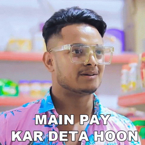 Prince Pathania says 'Main Pay Kar Deta Hoon' (I will pay) in a store setting.