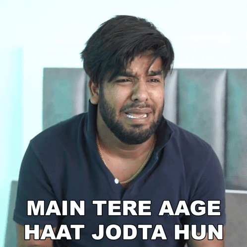 Yogesh Kathuria crying and pleading with folded hands, expressing 'Main Tere Aage Haat Jodta Hun'.