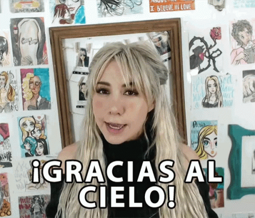 Maire Wink exclaims '¡Gracias al Cielo!' (Thank Heaven!) with relief after finishing tasks.