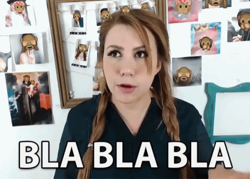 Maire Wink speaks animatedly, expressing herself with the phrase 'Bla Bla Bla' overlaid on the video.