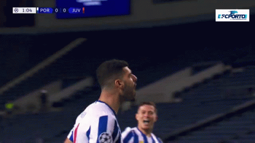 Mehdi Taremi celebrates a goal for FC Porto against Juventus, changing the score to 1-0.