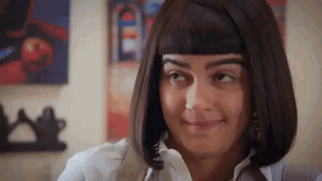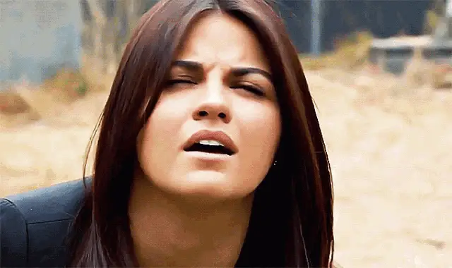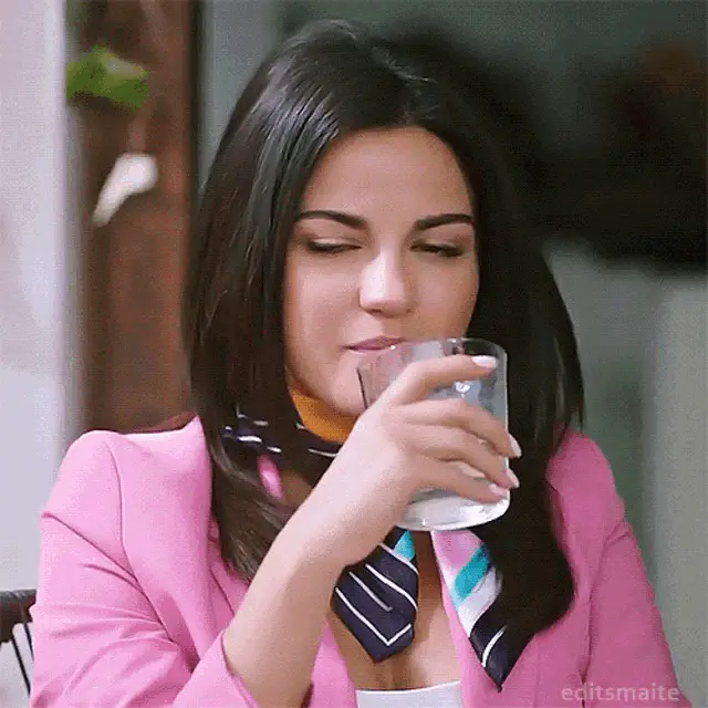 Maite Perroni with an expressive look, wearing red lipstick and dark clothing, with 'editsmaite' watermark.