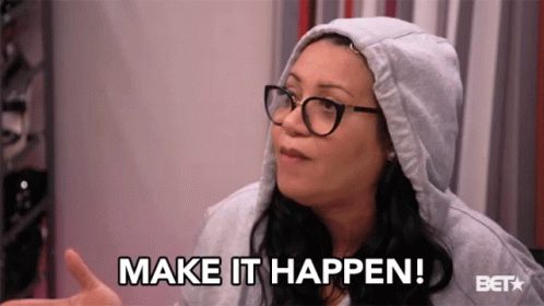 Cheryl James (Salt from Salt-N-Pepa) emphatically says 'Make It Happen!' during a discussion.