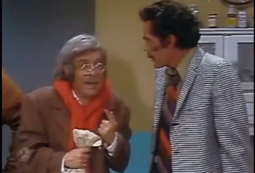 Chespirito and Chapatin perform a 'Mal Chiste' sketch, with Chespirito talking to Chapatin.