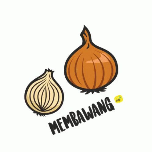 Cartoon drawing of an onion with the word 'membawang' below it, representing Malaysia Digilah.