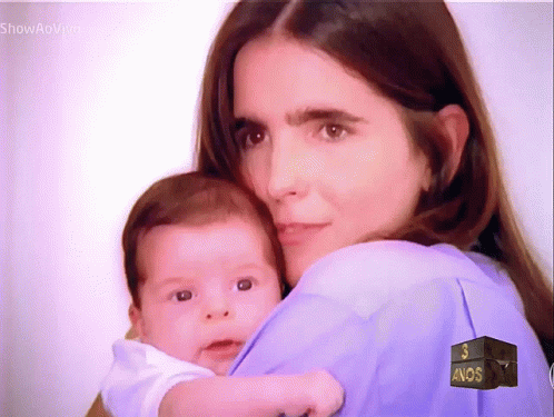 Malu Mader holding her baby Antonio, a heartwarming moment from the 90s, possibly from a live show.