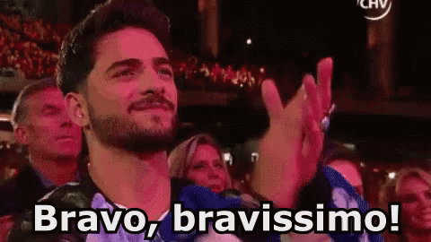 Maluma claps and smiles, with 'Bravo, bravissimo!' text on screen, at an event in Chile.