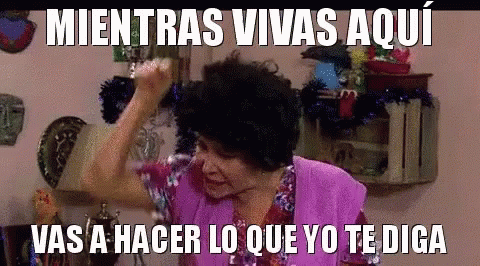 A woman with big hair and a purple top scolds someone with the caption "WHILE YOU LIVE HERE YOU WILL DO WHAT I TELL YOU".