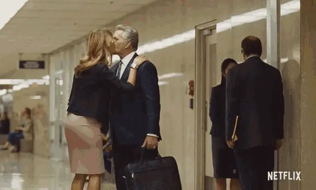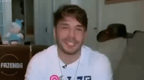 A man with a beard, wearing a white shirt, blows kisses to the camera, expressing gratitude.