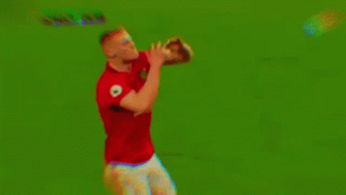 Scott McTominay of Manchester United celebrates on a green field, dropping to his knees in excitement.
