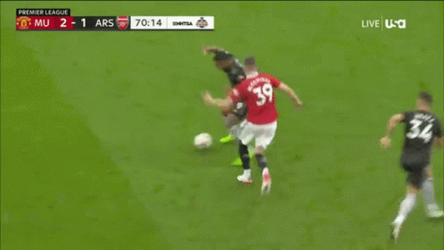 Manchester United's Scott McTominay makes a tackle on Arsenal's Gabriel Jesus during a Premier League match.