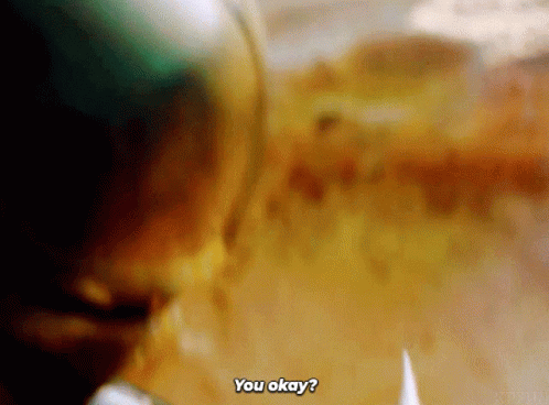 Baby Yoda (Grogu) from The Mandalorian looks up, with the caption 'You okay?' appearing on screen.