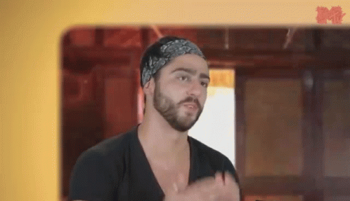 Potro from Acapulco Shore blows kisses, wearing a bandana and black shirt.