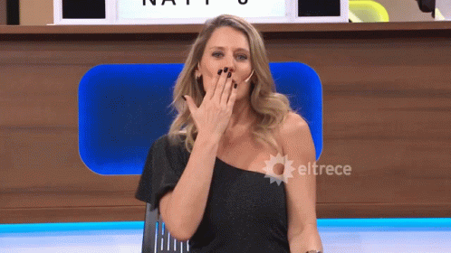Rocio, happy and excited, blows kisses on the set of El Trece's Match Game.