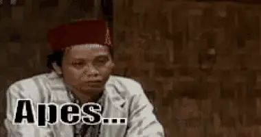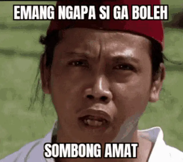 Indonesian comedian Mandra, wearing a red peci, expressively asks 'Why can't it be done???'