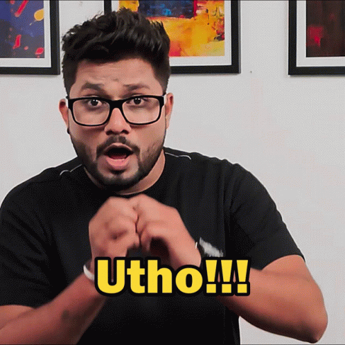 Mangesh Shinde, 'The Willpower Star,' passionately exclaims 'Utho!' (Wake Up!) while wearing glasses and a black shirt.