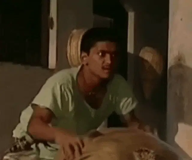 Manikuttan reacts with a 'funny heart attack' gesture during a lighthearted moment on Bigg Boss Malayalam.
