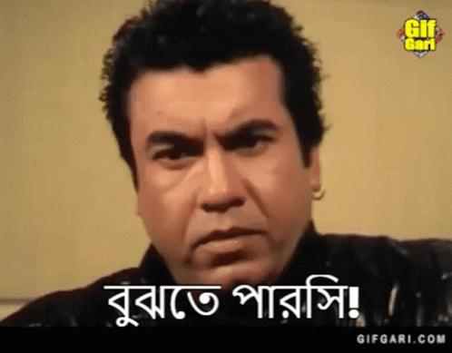 Bengali actor Manna with a serious expression, featuring the caption 'I understand!' (বুঝতে পারছি!).