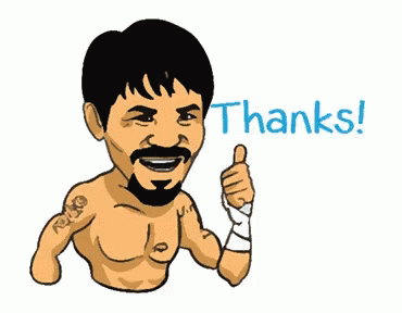 Cartoon of Manny Pacquiao, the boxer, giving a thumbs up with the word 'Thanks!' displayed.