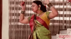 Manorama from Iss Pyaar Ko Kya Naam Doon dancing energetically in a green and yellow saree.